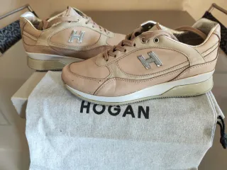 Scarpe Hogan da donna in una graziosa tonalità beige rosa con dettagli argento. - Logo H argentato sui lati. - Inserti in pelle scamosciata. - Suola bicolore. In ottime condizioni con piccoli segni di utilizzo come da foto originali pagate 265€ con scatola e sacchetto originale