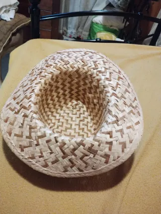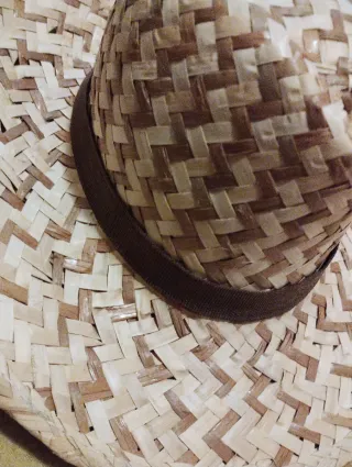 Cappello di paglia intrecciata con una fascia marrone. - Materiale: paglia. - Design a larghe falde.