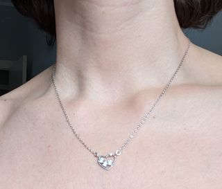 Collana con pendente a forma di cuore, impreziosita da brillantini luminosi. - Design a cuore con dettagli scintillanti. - Catena sottile in argento.