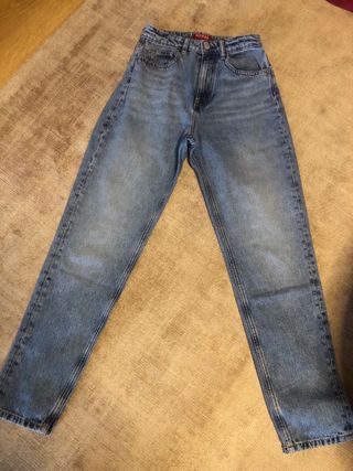 Jeans Zara a vita alta, perfetti per un look moderno. - Tessuto denim resistente. - Taglio a zampa. - Orlo sfrangiato.