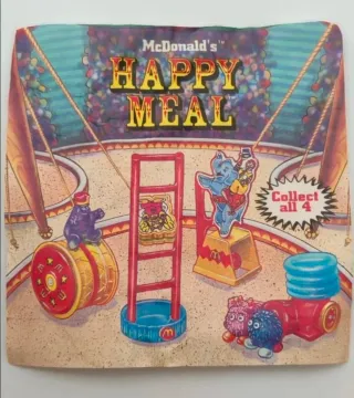 Set completo di giocattoli del McDonald's Happy Meal del 1994, a tema circo. - Personaggi colorati ispirati al mondo del circo. - Include tutti e 4 i pezzi da collezione.