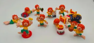 Set raro di 10 personaggi del McDonald's Happy Meal per il 10° anniversario di Pumuckl. - Personaggi in plastica colorata. - Include vari accessori come torta, patatine, pallone e trombetta. - Alcuni personaggi sono su basi con il logo McDonald's.
