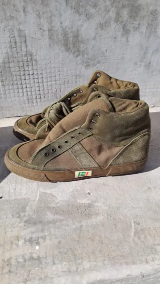 Scarpe ginniche stile militare. - Materiale in tela resistente. - Dettagli in camoscio. - Design alto.