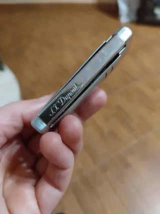 Elegante accendino Dupont in argento. - Design classico e raffinato. - Finitura lucida.