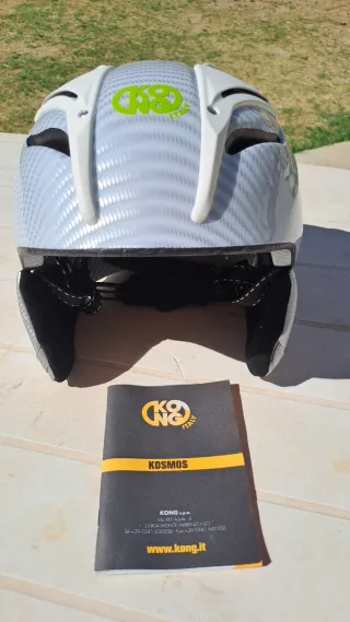 Caschetto da arrampicata e sci Kong Kosmos, taglia L/XL. Design moderno e leggero. - Colore bianco con dettagli verdi. - Materiale composito resistente. - Chiusura regolabile.