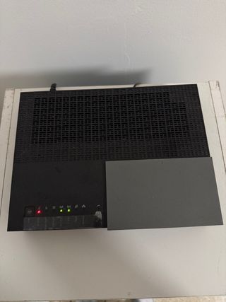 Modem Router TIM HUB+ con tecnologia Wi-Fi 6. L'apparecchio si presenta in ottime condizioni estetiche. - Design moderno e compatto. - Colore nero e grigio. - Logo TIM visibile sul dispositivo.