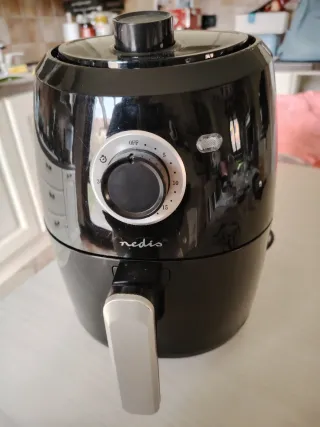 Vendo per inutilizzo friggitrice ad aria calda del marchio Nedis. Non ho più istruzioni e scatola originale Capacità: 2,4 litri. Potenza: 1000 W. Caratteristiche: Tecnologia a flusso d'aria rapido per cotture con pochi o zero grassi, termostato regolabile e timer da 30 minuti. Temperatura minima 90gradi massima 200