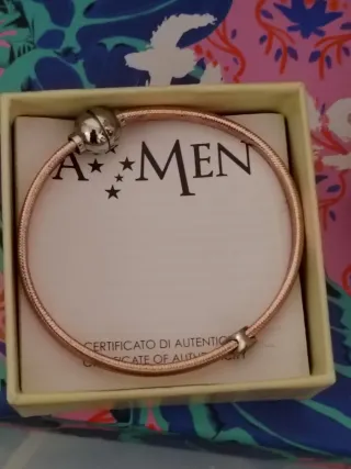 Elegante bracciale Amen da donna, con una finitura color oro. - Chiusura a sfera magnetica. - Design a catena snake. - Certificato di autenticità incluso.