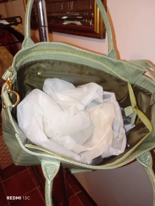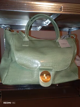 Borsa a mano più tracolla in pelle con un elegante effetto coccodrillo. - Materiale: Pelle - Colore: Verde - Dettaglio: Chiusura dorata con logo inciso - misure: lunghezza 40cm Altezza 30 cm Profondità 18cm
