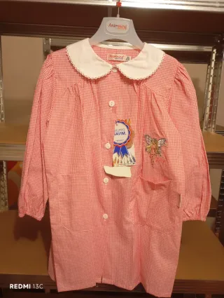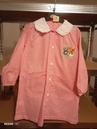 Grembiule a quadretti rosa per bambina, ideale per la scuola materna. Presenta un colletto bianco con bordo smerlato e una simpatica stampa dei personaggi di Paw Patrol sul petto. - Chiusura con bottoni bianchi. - Due tasche applicate sul davanti. - Maniche lunghe con elastico ai polsi.