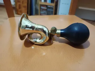 Clacson a tromba in ottone e gomma nera, dal design classico. - Finitura lucida in ottone. - Pompa in gomma nera. - Attacco metallico.