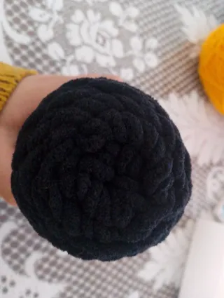 Gomitolo di filato in velluto nero, ideale per i tuoi progetti creativi. -Messo in confronto con un gomitolo di lana normale - Peso: 100g - Colore: Nero - Materiale: Velluto
