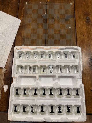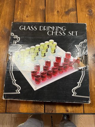Set da gioco Scacchi da bere in vetro. Perfetto per serate di divertimento. - Bicchierini in vetro inclusi. - Tavoliere da scacchi. Gioco degli scacchi con bicchierini Scacchiera e bicchieri in vetro Articolo in buone condizioni Scatola danneggiata (vedi foto)