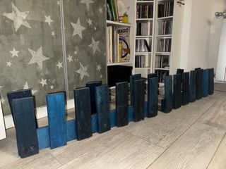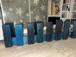 Deliziosa staccionata decorativa realizzata a mano. - Pezzi unici con finitura bicolore. - Ideale per aggiungere un tocco rustico a giardini o interni. Sono due pezzi di cm.80x16x25h ciascuno Realizzata con un pancale tagliato ed impregnante blu cobalto