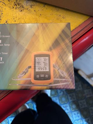 Termometro digitale per carne, ideale per cucinare. - Display LCD. - Due sonde incluse. - Funzione timer.