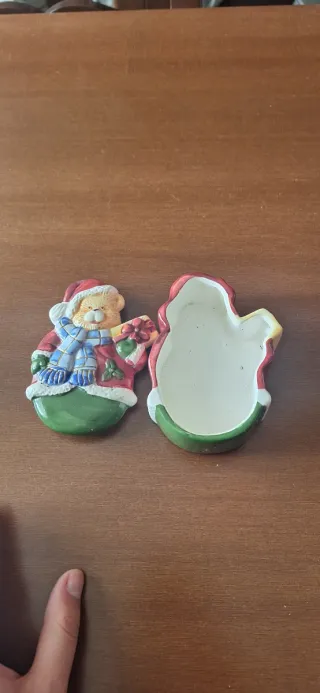 Grazioso portagioie a forma di orsetto vestito per Natale. Perfetto per contenere piccoli oggetti o caramelle. - Orsetto con cappello e sciarpa natalizia. - Dettagli decorativi a tema festivo.