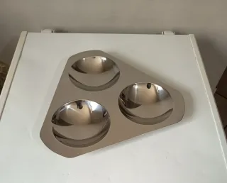 Splendida antipastiera in acciaio nobile superiore 18/10 altissima qualità Marchio prestigioso Imco Realizzata a 3 scomparti ampi,per una tavola elegante e importante. Nuova,mai usata Integra L'oggetto presenta una splendida lucentezza dell'acciaio. Misure cm 30x33