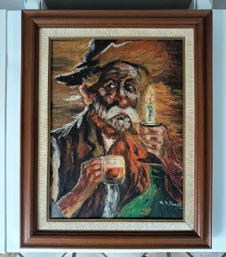 Dipinto su tela "Il Vecchio Bevitore" A. Di Bonito