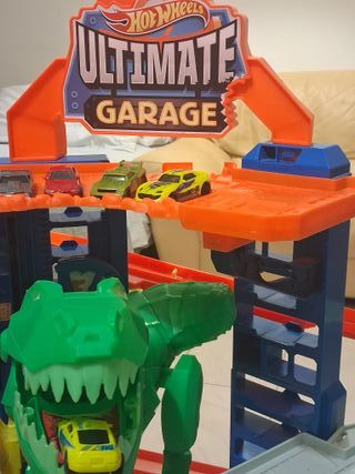 Il playset Hot Wheels City Robo T-Rex Ultimate Garage offre un'avventura emozionante. L'enorme garage Hot Wheels è una torre verticale in cui parcheggiare (in modo facilissimo) più di 100 macchinine (non incluse) e che ispira ore e ore di gioco di fantasia. Stai attento al famelico T-Rex Robot: non vede l'ora di divorare qualche gustoso veicolo Hot Wheels. Sfreccia lungo la pista che parte dalla sommità della torre-parcheggio e affronta i tuoi avversari in un entusiasmante testa a testa pieno di salti mozzafiato. - Include un dinosauro T-Rex. - Diverse piste e livelli per il gioco. - Spazio per parcheggiare le macchinine.