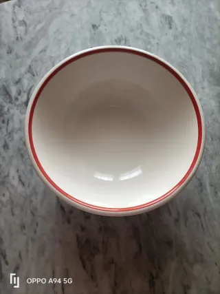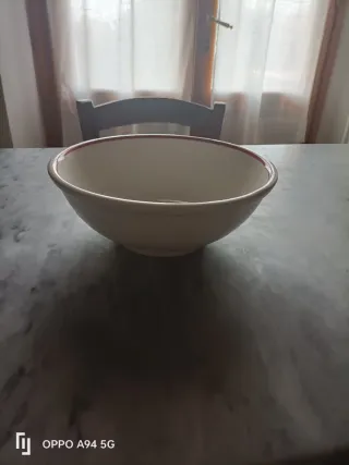 Elegante ciotola in ceramica, perfetta per la tua tavola. - Design pulito e raffinato. - Bordo decorativo rosso.