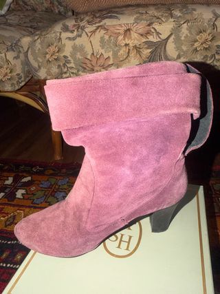 Stivaletti ASH in morbida pelle scamosciata color rosa. - Design con risvolto. - Tacco comodo. - Dettaglio con logo sul lato.