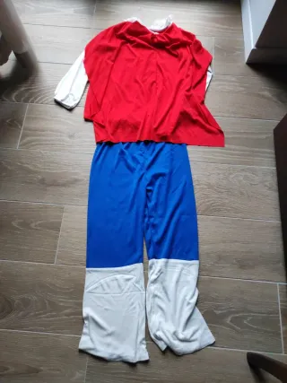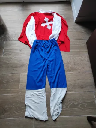Costume da supereroe per bambino, ideale per feste o travestimenti. - Mantello rosso con croce bianca. - Maniche bianche. - Pantaloni blu con gambali bianchi.