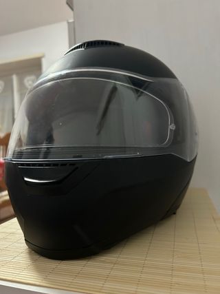 Casco modulare nero, taglia L, con visiera parasole integrata e predisposizione Pinlock. - Colore nero opaco. - Visiera esterna trasparente. - Visiera parasole interna a scomparsa. - Predisposizione per lente Pinlock (non inclusa). - Taglia L.