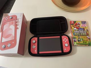 Vendo Nintendo switch lite mai usata, come nuova senza un graffio, scatola originale completa di caricabatterie, include gioco originale Nintendo di super Mario, regalo custodia protettiva. Color corallo.