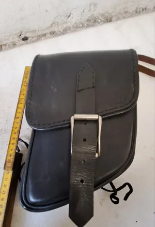 In quoio massiccio, 5mm di spessore. Fibbia inox di 40mm Dimensioni max 26x17x5 cm Completa di cinghie di fissaggio in quoio Prezzo di listino 160,00€