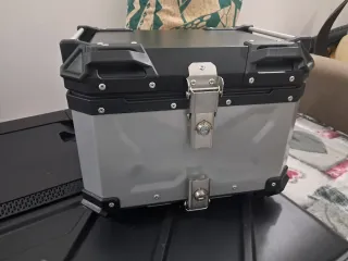 Bauletto universale per moto, ideale per trasportare oggetti in sicurezza.sprovvista di piastra per fissaggio che si può acquistare su internet - Design robusto e funzionale. - Chiusura a combinazione integrata. - Finitura bicolore nero e argento.