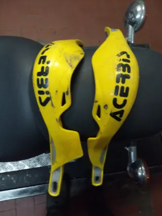 Coppia di paramani per moto stile supermotard. Senza attacchi - Colore giallo vivace. - Marchio Acerbis ben visibile. - Design protettivo per le mani.