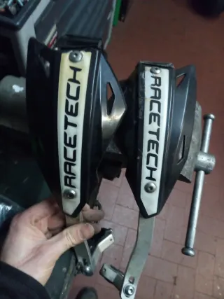 Set di paramani per moto stile supermotard. Più ricambi Un paramano e' piegato - Protezioni per manubrio. - Design aerodinamico.