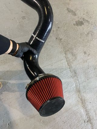 Ammissione in silicone nero per motori K20/K24. - Tubo in silicone nero. - Filtro dell'aria conico rosso.