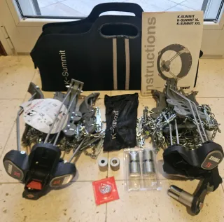 Set di catene da neve K-Summit XL di Thule, modello K-Summit. - Include borsa portaoggetti. - Istruzioni di montaggio. - Componenti aggiuntivi inclusi.