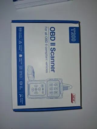 Scanner diagnostico per auto, modello T200. - Display a colori. - Tasti di navigazione e ESC. - Cavo di collegamento OBD II incluso. - Manuale utente fornito.