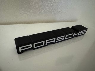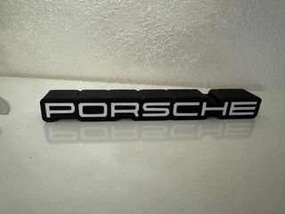 Logo Porsche in rilievo, ideale per arredare la tua scrivania o libreria. Il design moderno e iconico lo rende un pezzo unico. - Colore: nero con scritte bianche. - Materiale: plastica. 18x3x2,5