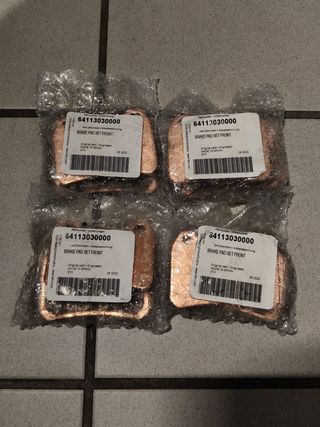 Set di 4 coppie di pastiglie freno anteriori per moto KTM 790 Duke e Adventure e 890 SMT dal 2018 al 2023 Prodotto nuovo e originale KTM Prezzo singolo unità 20€ Codice prodotto 64113030000