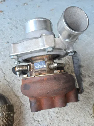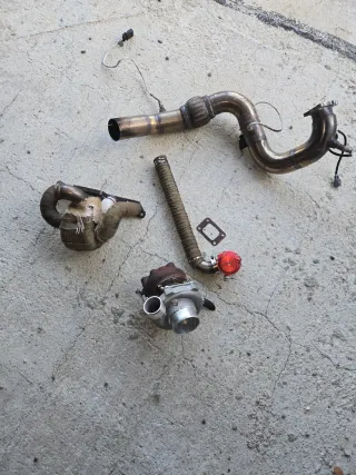 Kit turbo per Mini R53. Kit con all attivo pochissimi km meno di 500 quindi in perfetto stato. Collettori e downpipe artigianali La turbina è una Pulsar GTX2867R Gen 2 su cuscinetti, 0.64 AR attacco t25 , scarico imbullonato