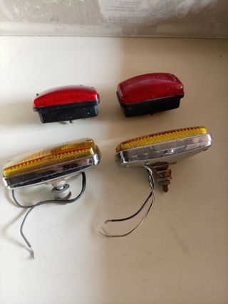 Coppia di fari fendinebbia vintage, ideali per veicoli degli anni '70 e '80. Presenti due fari gialli e due rossi. - Fari gialli con cornice cromata. - Fari rossi con lente riflettente.
