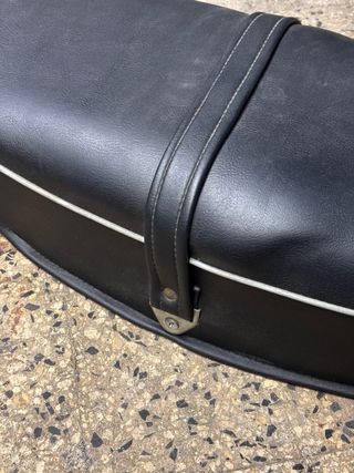 Sella originale per Vespa Sprint, TS e VTT. Design classico e finiture curate. - Rivestimento in similpelle nera. - Bordino perimetrale bianco. Vendo sella originale per Vespa Sprint compatibile anche con Vespa TS, Vespa VTT e altri modelli d’epoca Vespa (verificare compatibilità prima dell’acquisto). Struttura solida e in ottime condizioni, pronta per il montaggio. Unico difetto: piccolo strappo sulla fodera, facilmente riparabile o sostituibile con poca spesa. Ideale per restauro o per mantenere l’originalità del mezzo. Disponibile per ulteriori foto e informazioni. Possibilità di spedizione o ritiro a mano.