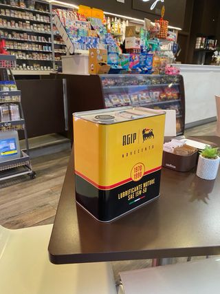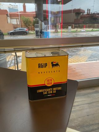 Olio motore Agip Novecento, edizione speciale per il 1970-1990. - Lubrificante per motori. - Grado di viscosità SAE 15W-50. - Confezione da 1 kg.