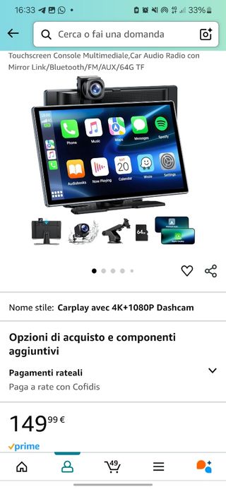 Lamto Autoradio Portatile con A-pple Carplay Android Auto con Dashcam Anteriore Posteriore 4K+1080P,9 Pollici Touchscreen Console Multimediale,Car Audio Radio con Mirror Link/Bluetooth/FM/AUX/64G TF ........ Usato poco