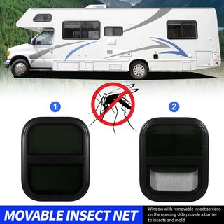 Finestre scorrevoli per camper e roulotte, perfette per migliorare la ventilazione e la luminosità del tuo veicolo ricreazionale. Sono in ottime condizioni, esteticamente impeccabili. - Misure: 440x390mm - Include zanzariera rimovibile - Ideali per vani portaoggetti, soggiorni e ovunque sia necessario