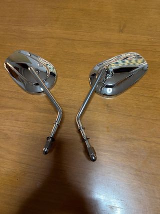 Coppia di specchietti retrovisori cromati. Nuovi smontati dalla moto appena arrivata in concessionaria ,stelo corto .
