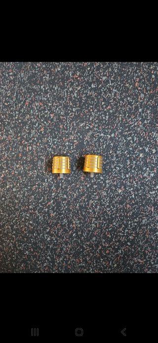 Terminali manubrio ergal color oro, marca "4racing components" solo su uno dei 2 qualche piccolo segno. Con viti da 6 mm da montare direttamente su manubrio originali con filettatura o eventualmente da adattare se il manubrio non è provvisto di filettatura