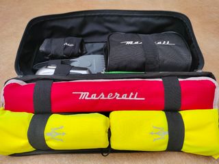 Vendo kit di emergenza Maserati originale. È in ottime condizioni ed è completo - Include tutto l'essenziale per la sicurezza in auto. - Borsa robusta e ben organizzata. - Logo Maserati ricamato.