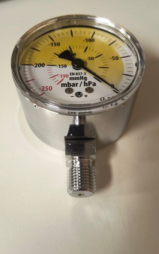 Vacuometro Vuotometro Wika - diametro:60mm - scala: 250-0 mbar - attacco radiale 1/4" gas - protezione in gomma in omaggio - oggetto nuovo –