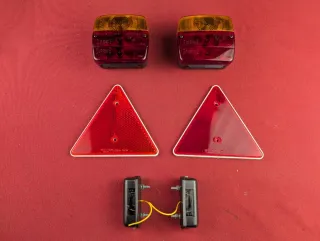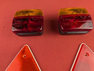 Set di fanali posteriori per rimorchio, nuovi completi di triangoli catarifrangenti e fanali luce targa.