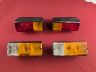 Coppia di fanalini posteriori per trattore d'epoca in materiale plastico. Ideali per restauri o ricambi.
