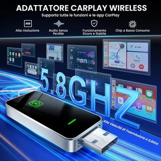 Adattatore CarPlay Senza Fili Converte il Cavo di Serie in un Dongle ADATTATORE CARPLAY WIRELESS】Convertire facilmente CarPlay OEM cablato in wireless! Supporta la navigazione, la riproduzione musicale, l'assistente Siri, le telefonate, i messaggi di testo e altro ancora. Consente di utilizzare l'app Carplay completa e di mantenere il funzionamento di serie. Niente più cavi aggrovigliati, tieni pulita la tua auto e goditi la comodità di CarPlay wireless - puro piacere di guida 【COMPATIBILITÀ】l'adattatore CarPlay USB wireless è compatibile con oltre 800 modelli di auto. Funziona solo con telefoni cellulari con iOS 10 o superiore.